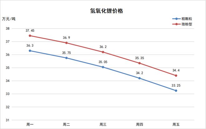 上周,3月27日-3月31日,锂价继续下跌。其中,电池级碳酸锂价格下探至23.8万元/吨,氢氧化锂价格低至33.25万元/吨,六氟磷酸锂低至10.15万元/吨。