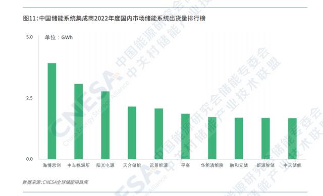 中国储能系统集成商2022年度国内储能系统出货量排行榜
