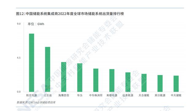 中国储能系统集成商2022年度全球市场储能系统出货量排行榜