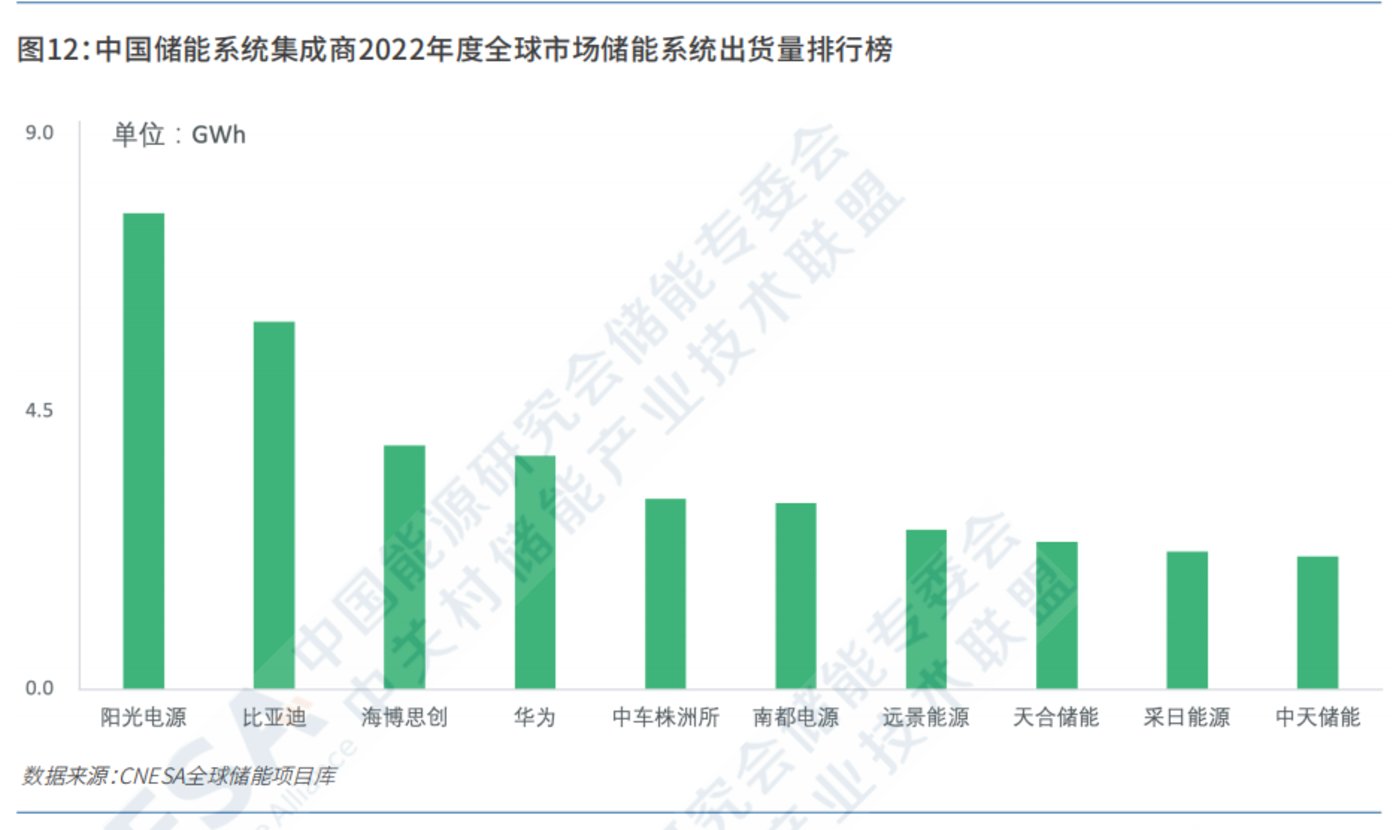 比亚迪也占据2022年度全球市场储能系统出货量榜单的第2名,华为第4。