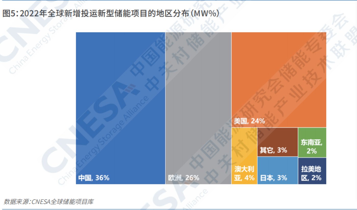 近年来新增投运新型储能项目地区主要在美国、欧洲和中国,合计占全球市场高达80%。