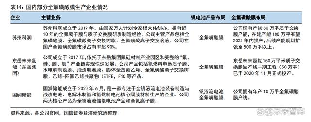 国内企业加速全氟磺酸膜国产化,并且积极进行其他离子膜探索。国内企业全氟磺酸膜的性能持续提升,有望凭借性价比优势加速进口替代。目前,苏州科润、东岳未来氢能等在国产化方面进展领先,亿华通旗下上海神力、国润储能等均积极加快产品研发与布局。 而中国科学院大连化物所等也持续加快在多孔离子传导膜等领域研究,现已完成电池系统可靠性验证。