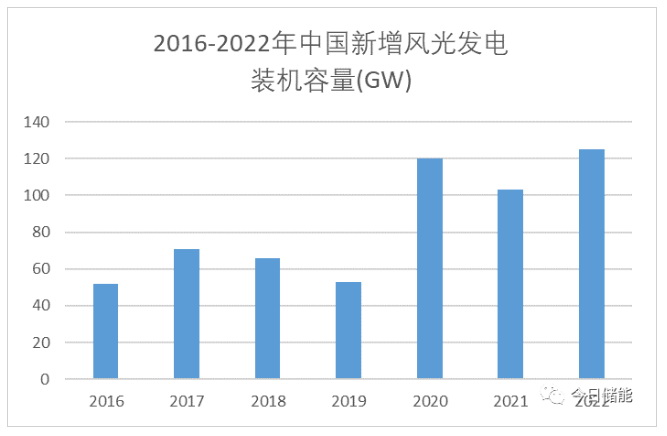 中国新增风光发电装机容量图 (数据来源:国家能源局、中电联,iFinD)