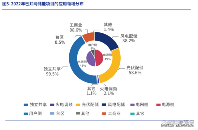 以此来计算,风光配储项目占2022年已并网储能项目的比例高达47.4%,规模比例排第一位。