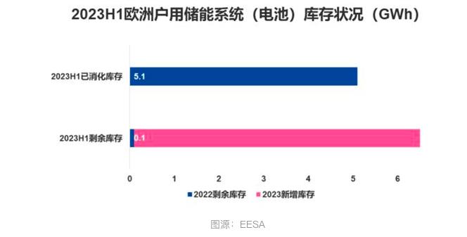 根据国内产业机构 EESA 统计,2022 年全球户用储能系统(电池)出货量约为 24.4GWh,其中对欧洲户用储能市场出货量达到约 9.8GWh;然而,2022 年欧洲户用储能实际装机 4.6GWh,仅 2022 年底欧洲户用储能系统(电池)库存约为 5.2GWh。