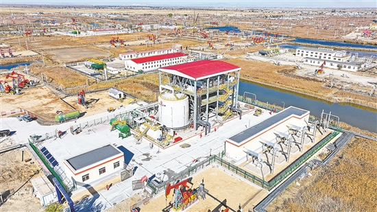 辽河油田电热熔盐储能注汽试验站:世界首座电热熔盐储能注汽试验站。目前常见的熔盐储能方式是把光热或谷电、绿电转化为热能储存在熔盐中,再通过全天连续释放热能与纯净水换热产生过热蒸汽用于发电。该试验站通过独创的蒸汽发生系统,将油田开采过程中产生的污水净化软化后与高温熔盐换热,产生的湿饱和蒸汽直接用于油田生产,可有效减少能量转换过程中的消耗。该试验站每年可生产蒸汽4.8万吨,替代天然气313万立方米,减排二氧化碳6768吨。(罗前彬 整理)