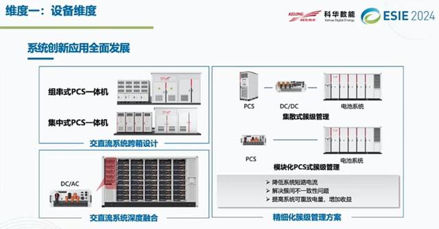 除了设备本身,我们在系统应用当中也有各种组合,交直流融合包括交直流跨箱跟深度的一处一管理,来解决电池的一致性问题。
