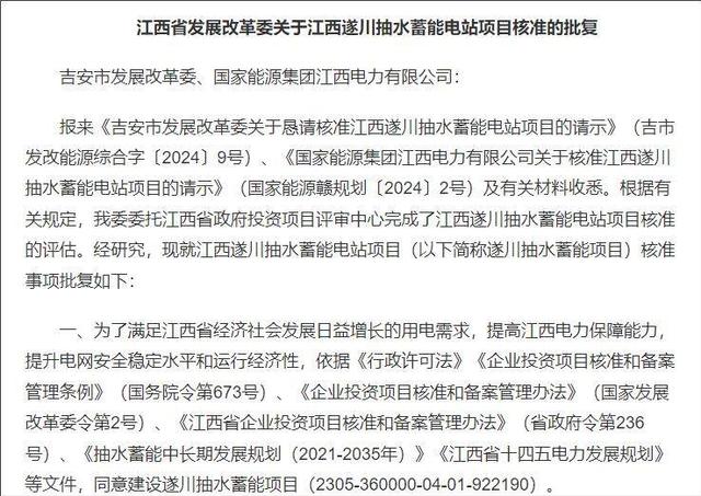 综上所述,江西遂川抽水蓄能电站项目的正式批准标志着这一重大清洁能源项目正式进入实施阶段。这将对优化区域能源结构、增强电网安全性、推动经济社会发展、缓解电网调峰矛盾、促进节能减排和环境保护等方面产生深远影响,是朝着更加绿色、更加可持续的未来迈进了一大步。