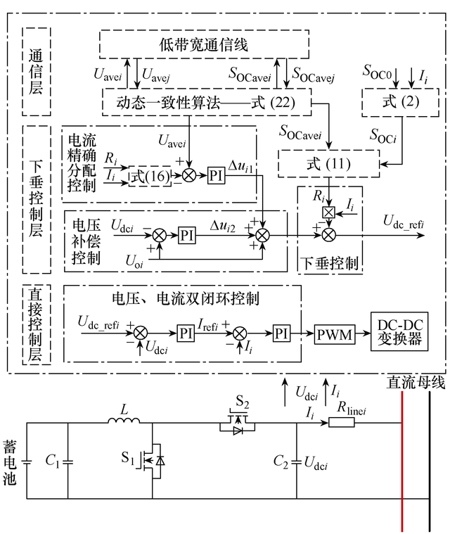 他们指出,以改变下垂系数为基础,通过前期控制因子调节系统最大输出功率,后期加速因子放大均衡后期荷电状态的差值,能够达到加快荷电状态均衡的目的。另外,引入容量权重因子,合理分配不同容量储能单元的功率,使其趋于容量比,旨在有效弥补各储能单元间的容量差异,有助于确保各个储能单元在充电和放电过程中的合理参与,提高系统的整体效能和使用寿命。