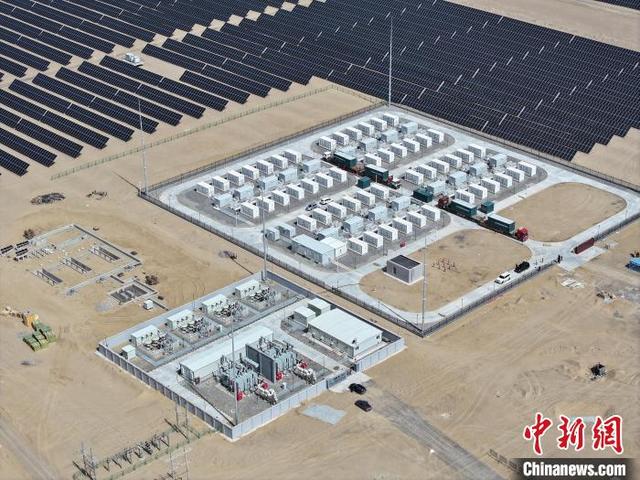 6月18日,航拍位于青海省海西蒙古族藏族自治州格尔木市的全球首个50兆瓦/100兆瓦时智能组串式构网型储能电站。全球首个50兆瓦/100兆瓦时智能组串式构网型储能电站——青海格尔木鲁能弥盛储能电站于近期正式投运。据了解,构网型储能电站相比传统新能源场站内的储能,能够发挥对电压和频率的主动支撑能力,在弱电网环境下更能发挥储能在电力系统中的作用,实现更大范围的调峰调频作用,具有更高利用率。(无人机照片)中新社记者 马铭言 摄