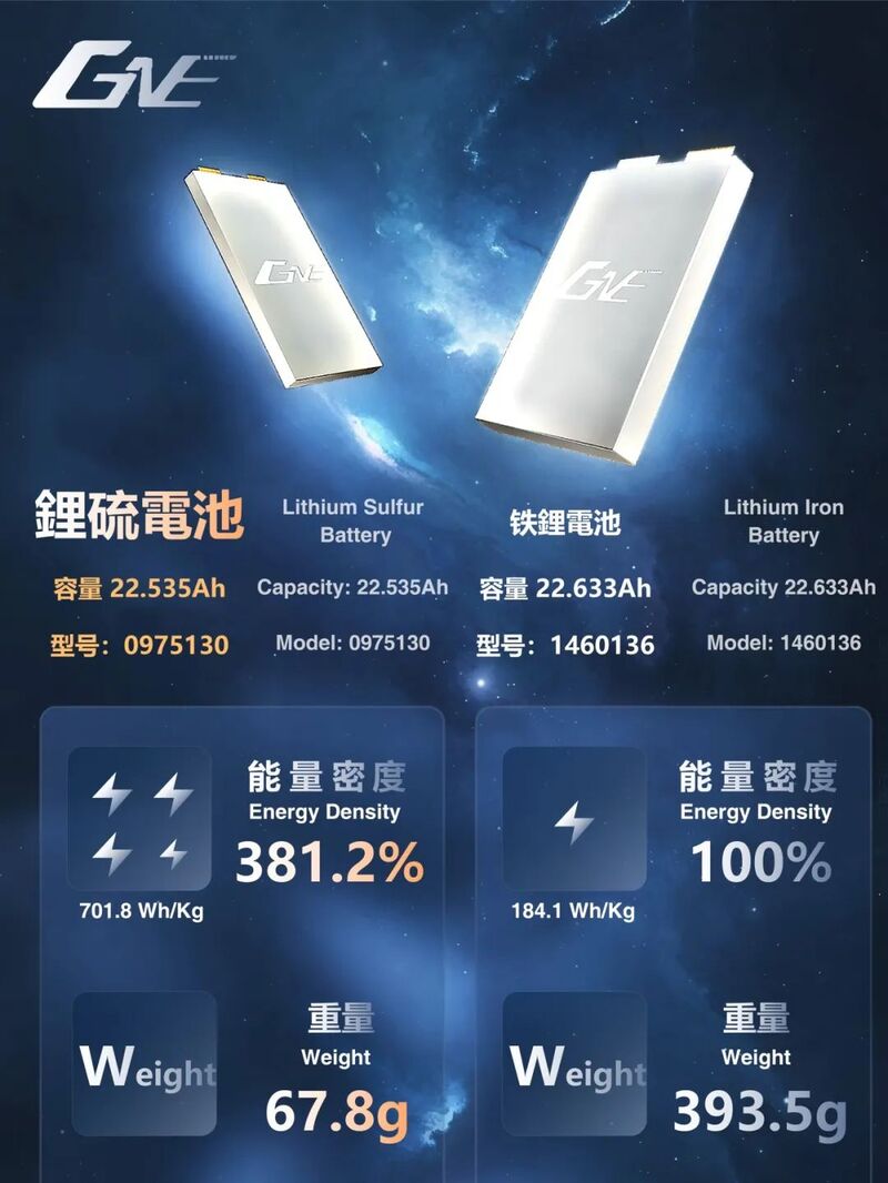 他表示,锂硫电池是一种全新的下一代锂电池,理论能量密度可以高达2600wh/kg。与磷酸铁锂、三元锂电池的不同之处在于,它的负极采用的是金属锂,而正极则用的是硫。