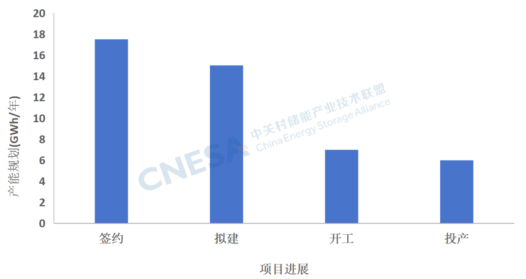 6月份新增产能(含签约、拟建、开工和投产)45.5GWh,投资额超过250亿元人民币。