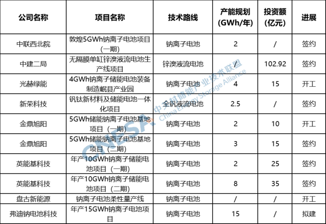 表 非锂电池产能项目