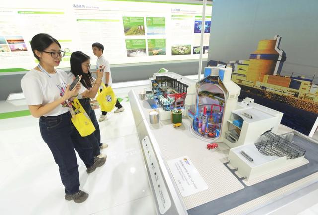 10月20日,第24届东亚及西太平洋电力工业协会大会上,参观者在国家电力投资集团有限公司展位参观拍摄“国和一号”核电机组模型。新华社记者林善传摄