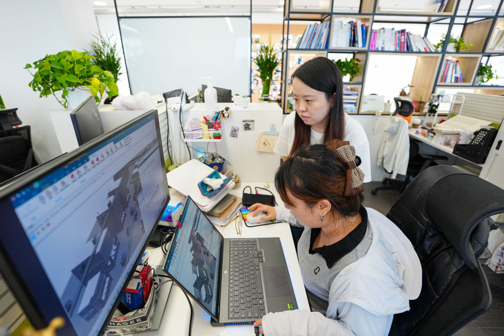 2024年8月26日,中国电子院工作人员在讨论某先进半导体项目物流仿真方案