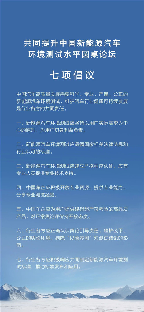 具体来看,长城汽车提出共同提升中国新能源汽车环境测试水平七项倡议: