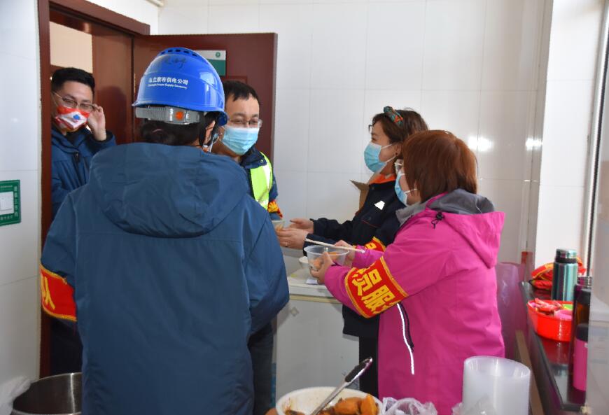 为使检修一线职工以最饱满的热情投入到本次春检工作中,四子王输变电管理处成立的党员服务队为春检的工作人员送去了暖心午餐。党员服务队的女同志说:“虽然我们不能工作在春检一线,但是做后勤保障工作,也一样是为检修工作出力,在哪个岗位都要发光发热。”
