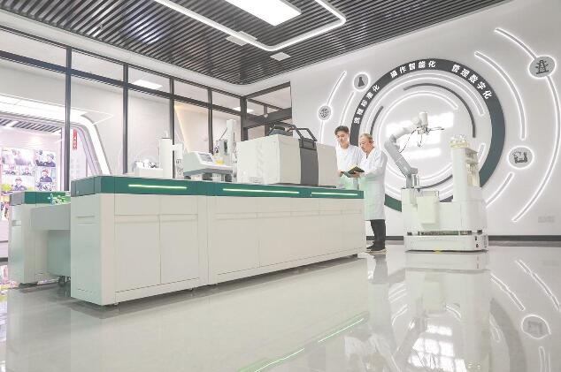 11月20日下午,在国网河南超高压公司油气水智慧实验室内,移动复合机器人利用夹爪将移动小车上的样品瓶稳稳地放在实验台上,协作机械臂立即操作注射器取样、进样,随后绝缘油微水测试仪自动开始检测,并将得到的检测数据上传。这套绝缘油智能检测线由该公司试验检测中心柔性科技攻关团队创新研发。