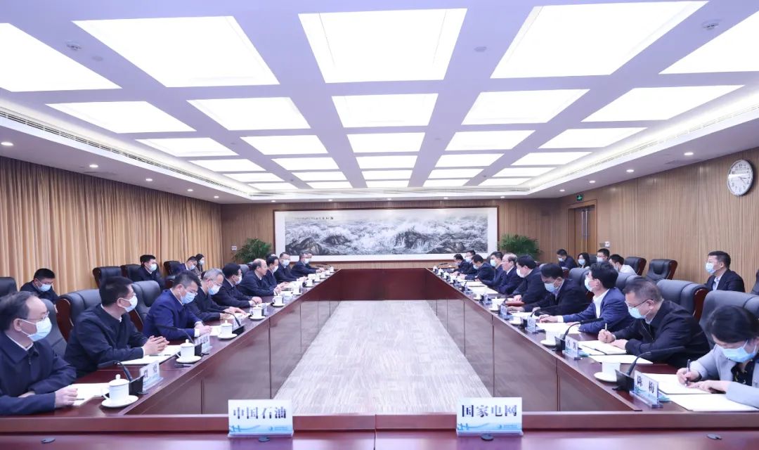 本网讯 4月26日,国家电网有限公司董事长、党组书记辛保安,总经理、党组副书记张智刚在公司总部与中国石油天然气集团有限公司董事长、党组书记戴厚良,总经理、党组副书记侯启军举行会谈。