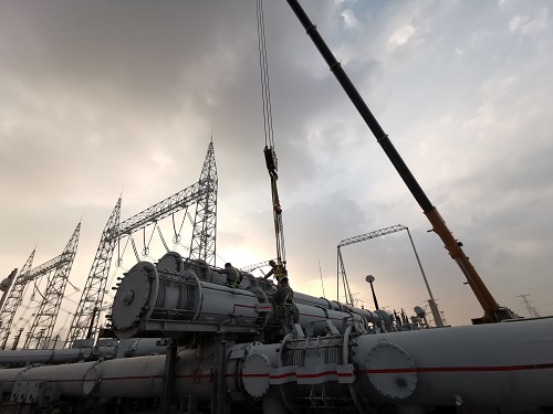 母线PT主要供辅助并网、继电保护和监测母线运行状态使用,特高压淮南站在初期建设时设计安装单相PT,今年开展了1000千伏母线B、C相加装PT工作。公司调配精干力量组成专项工作小组,提前勘察作业现场,工地监督人在现场再三强调:“作业现场有真空机、空气干燥机、200吨吊车、25吨吊车和8吨吊车等多台大型机具,相邻间隔带电运行,一定要提前规划好车辆作业路线和机具、物料摆放位置。”由于工期紧张,每天现场作业时间长达12个小时,公司在全力做好疫情防控工作的同时,采用“工地监督+到岗到位+全时段视频稽查+不定期检查”四合一的方式扎实开展现场安全管控工作,此次工程结束将有效降低特高压淮南站GIS在系统调试和运行中空充主母线时的放电故障率。