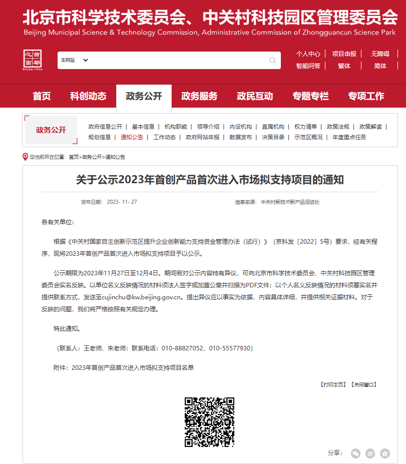 本次申报经过与全市100多个项目比拼、多组专家评审、现场答辩、第三方审计,最终通过北京科委行政办公会审议,获评“国际首创产品”,成为本年度仅有的4项国际首创产品之一。
