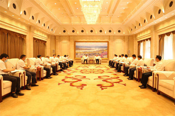 本网讯 6月9日,中国华电党组书记、董事长温枢刚在乌鲁木齐与东方电气党组书记、董事长俞培根交流座谈,双方就进一步深化务实合作,助力新疆高质量发展达成共识。集团公司党组成员、副总经理吴敬凯,东方电气党组成员、副总经理张继烈参加座谈。