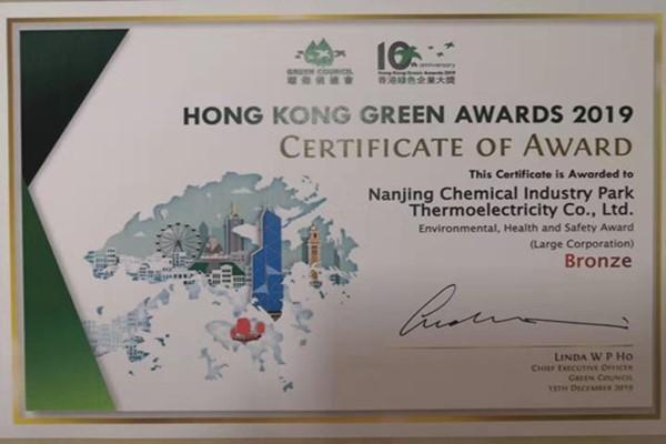中国电力网讯 12月13日,香港环保促进会主办的“2019年香港绿色企业大奖”颁奖典礼在香港举行,南京化学工业园热电有限公司(以下简称:公司)获得“超卓环保安全健康奖”。