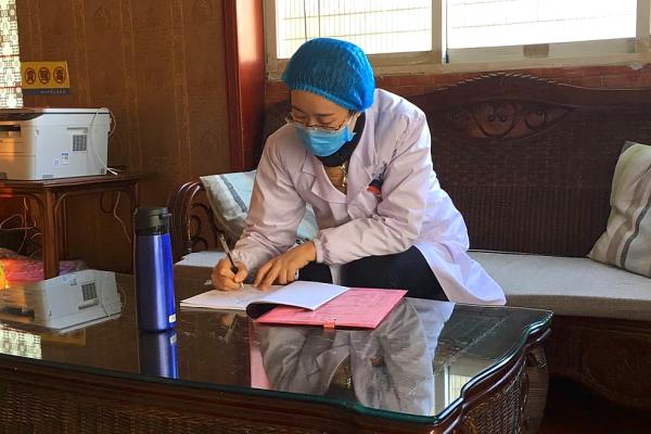 图为:兰丰认真做好疑似传染人员数据上报