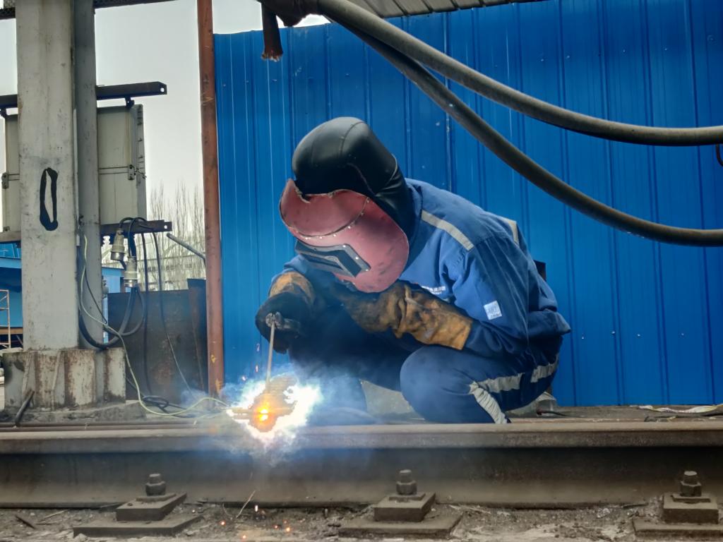 图为焊接轨道现场