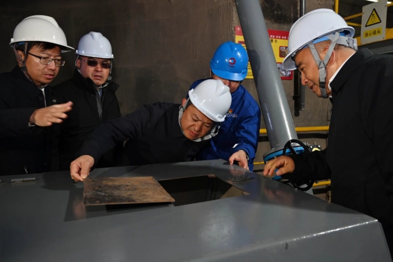 新疆米东天山水泥有限责任公司是一家使用工业废电石渣作为原料生产水泥熟料的企业,黄润秋来到公司生料磨房—原料配料库,查看粉尘治理、隔音降噪、输送设施密闭等超低排放改造情况,了解企业大气污染物排放浓度,鼓励企业继续抓好粉尘和噪声污染治理,使用清洁能源,切实降低能耗水平。