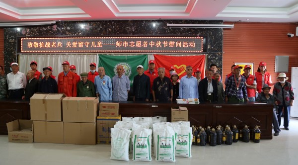 活动期间,志愿者们还和老兵们、留守儿童们温馨合影,并将第二师天泰电力志愿者协会申请中国人权基金会1.57万元资金购置的月饼、面粉、清油,图书、文具用品送给抗战老兵及留守儿童们,让这些曾经为国家独立,民族解放浴血奋战的抗战老兵,以及留守儿童们感受到来自社会的关爱。