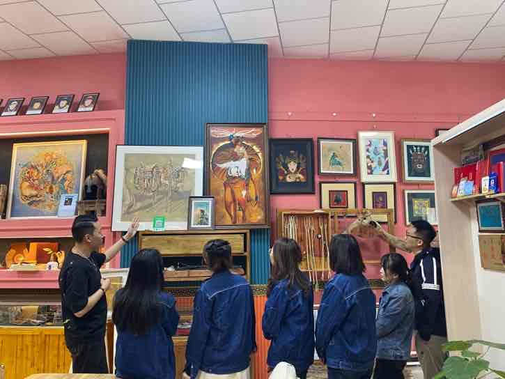 本次活动内容丰富,党员干部职工积极前往阿拉善盟非物质文化遗产皮雕艺术传承研究展示中心参观并体验非遗文化皮雕技艺。首先,由阿拉善盟非物质文化遗产传承人“皮雕匠人”张浩老师向大家介绍皮雕技艺在阿拉善地区传承发展的历史以及在展的各种皮雕艺术品,并现场演示了皮雕制作的基本技法,紧接着带领大家制作传统皮质钥匙包。职工们热情高涨,纷纷动手操作,开料、刻线、描摹、染色、缝线,皮面和针线来回穿插,充分体验到了非遗的魅力和手作的乐趣,最后在紧张刺激的民族团结知识问答题中结束了本次活动。