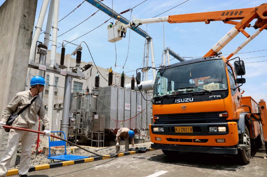 此外,由于近期的连续高温天气,为了减少施工人员在户外高温时期的作业时间,福安公司运检部特地协调带电作业车配合变电检修班,对35千伏母线引下线进行拆除。