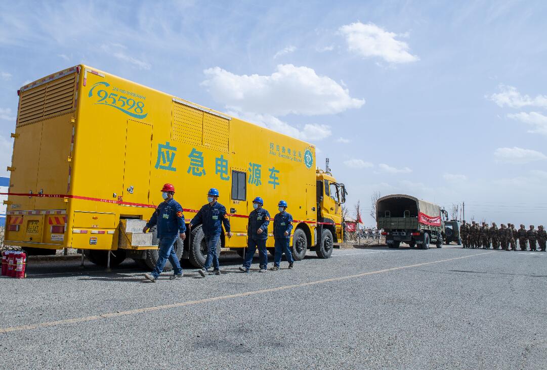 接到保电任务后,内蒙古电力集团立即启动特级保电模式,召开3次保电部署会,针对当前电网春查检修期、保电值守期、负荷上升期三期叠加的状态,完善保电方案和应急预案,提前开展保障演练,全面做好应急处置各项准备。以阿拉善供电公司为主力的保电队伍集合调度、输电、运行、配电、检修、信通等多专业50余名骨干提前进驻现场,形成“整体指挥、专业协同、团队合作”的作战模式;出动应急电源车1辆、应急发电机4台,确保军地联合指挥所通讯、指挥信息全天候、全方位、全过程及时传达;对涉及保电的4座变电站及220公里输电线路进行“地毯式”隐患排查与缺陷消除,4座无人值守变电站恢复有人值守,对重点输电线路安排蹲点值守;对保电区域内涉及停电的用户做好停电原因解释工作,确保保电窗口期客户“零投诉”。