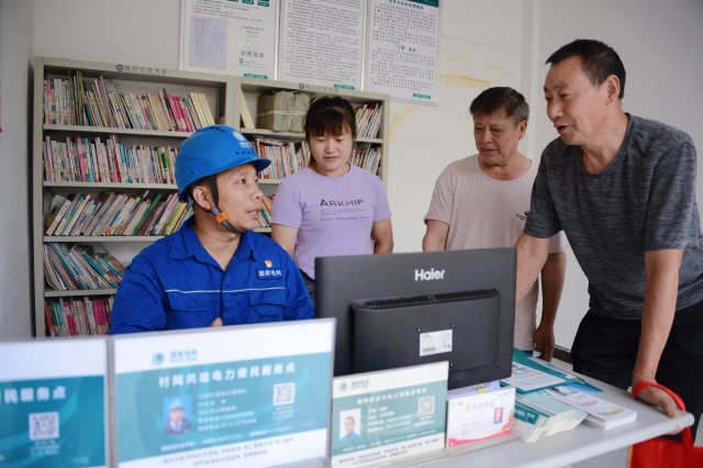 今年以来,国网荣州供电公司坚持以党建引领供电服务,主动将供电服务网格融入地方政府网格工作,由留佳供电所党支部与大屋坡村签订乡村振兴共建合作协议,并按照“公司+支部+供电所”三级助力模式,率先在大屋坡村成立首个政企合署办公、网格融合型电力便民服务站,定期安排工作人员驻点办公,实现电力台区经理与政务人员“政策共推、诉求共解、业务共办”,让老百姓不出村就能解决用电咨询、业务办理、缴纳电费等业务。