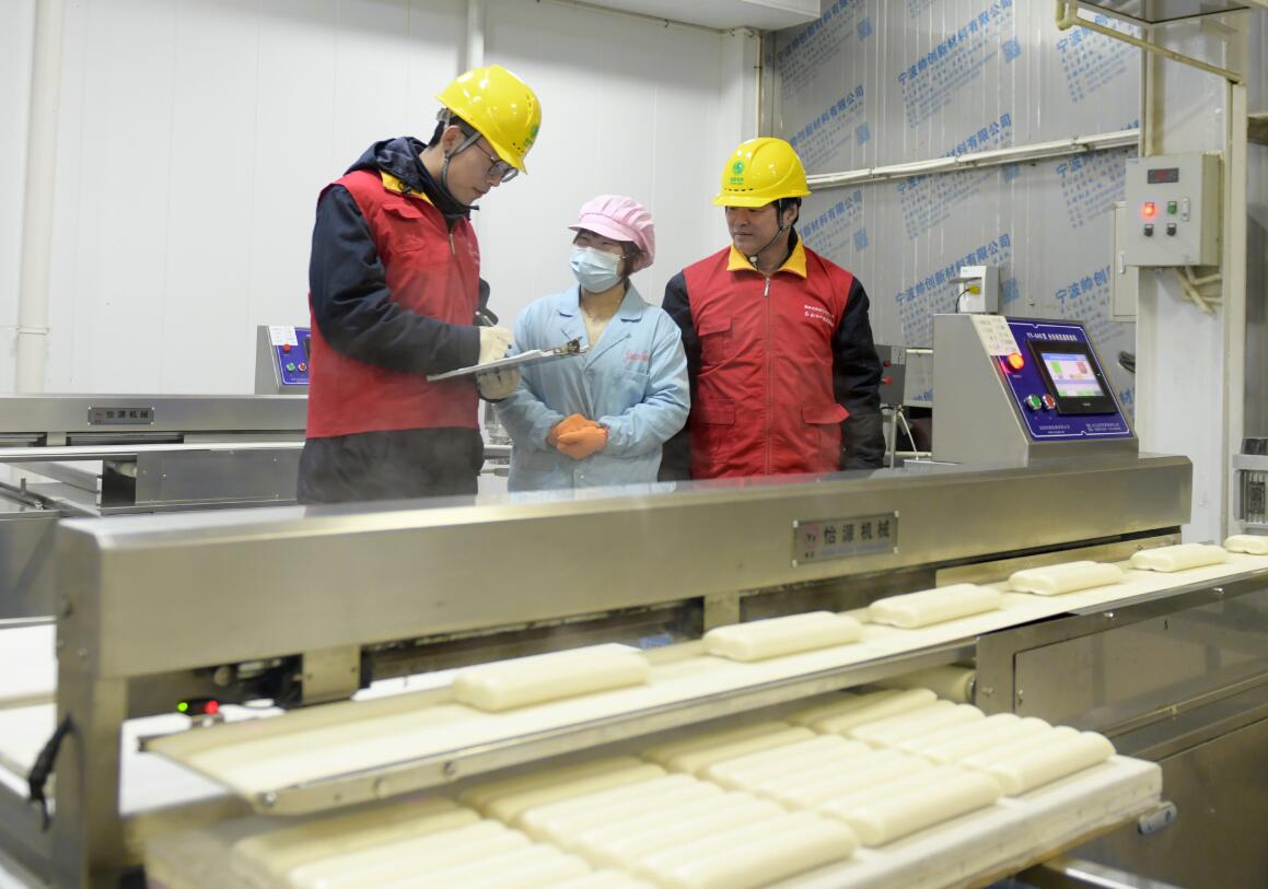 走进年糕生产车间,一条条生产线正全线运行。“制作年糕要经过浸米、磨粉、压干、上蒸等多道工序。”余元国介绍,随着生产工艺的逐步改进,现在每个环节都实现了电气化,可以通过淘米机、打粉机、蒸汽灶等一系列精密的设备来完成,工人们只需在一旁做一些辅助操作,大大地提高了生产效率,去年产值就达到了4000多万元。
