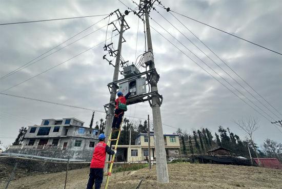 图为国网重庆黔江供电公司员工在太极镇巡检变压器等设备。文烽卜 摄