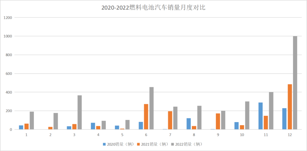 进入2022年,燃料电池汽车产销增幅逐步加大。以2022年12月为例,在新能源汽车主要品种中,与上月相比,三大类品种产销均呈不同程度增长,其中燃料电池汽车增幅更为显著。