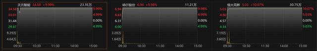 多重利好驱动氢能板块拉升,拥有水制氢设备的天元智能收盘录得6连板,拟与新视扬共同设立江西恒大绿能科技有限公司主要开展氢能源等新能源材料业务的恒大高新、子公司旗下具有氢能源领域核心零部件等项目的纳尔股份双双涨停。