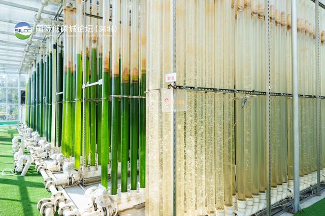 踏入微藻阳光房,仿佛步入一片“森林氧吧”,在一排排透明的立柱反应器中,绿藻正通过光合作用,不断“吞噬”着提纯后的二氧化碳。