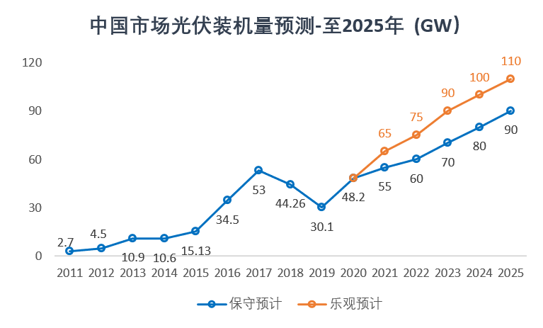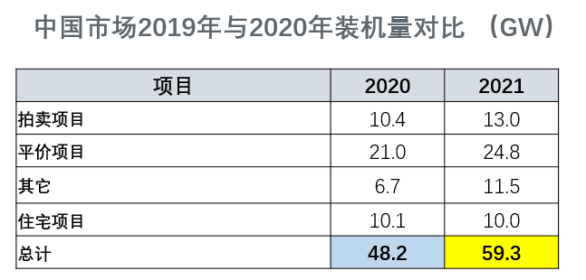 2020年,中国地区光伏装机量达到 48.2 GW,远超过之前的预期