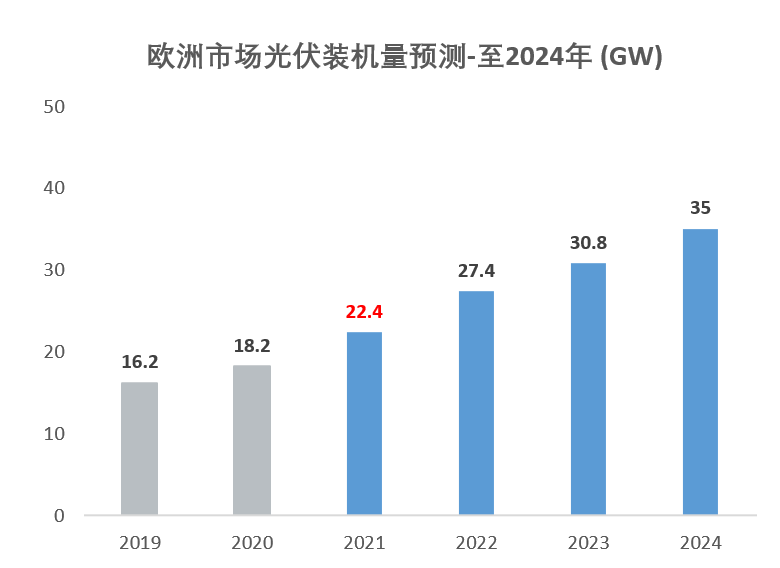 欧洲市场2020年的装机情况表现积极,在接下来的4年中,光伏装机需求将更加强劲,主要有以下增长因素: