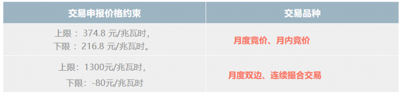 *注:5个交易品种的申报价格约束,山东容量电价另计算。