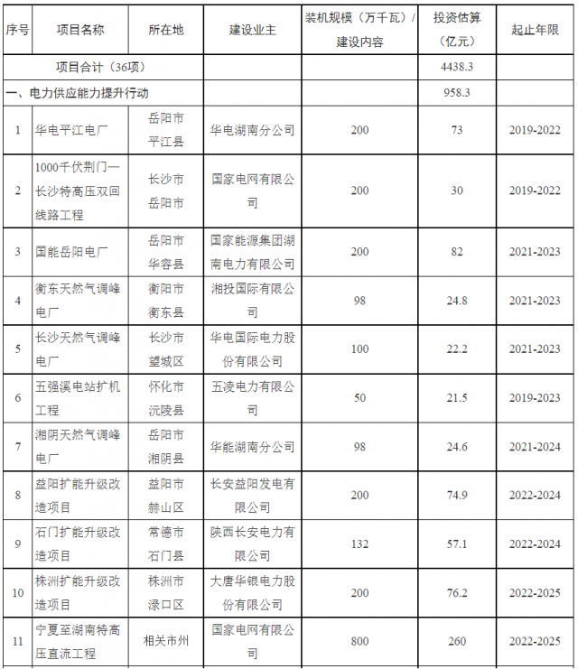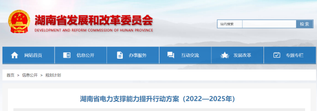 2022年10月13日,湖南省发改委根据省政府“三大支撑八项重点”部署,制定《湖南省电力支撑能力提升行动方案(2022—2025年)》。方案中提出: