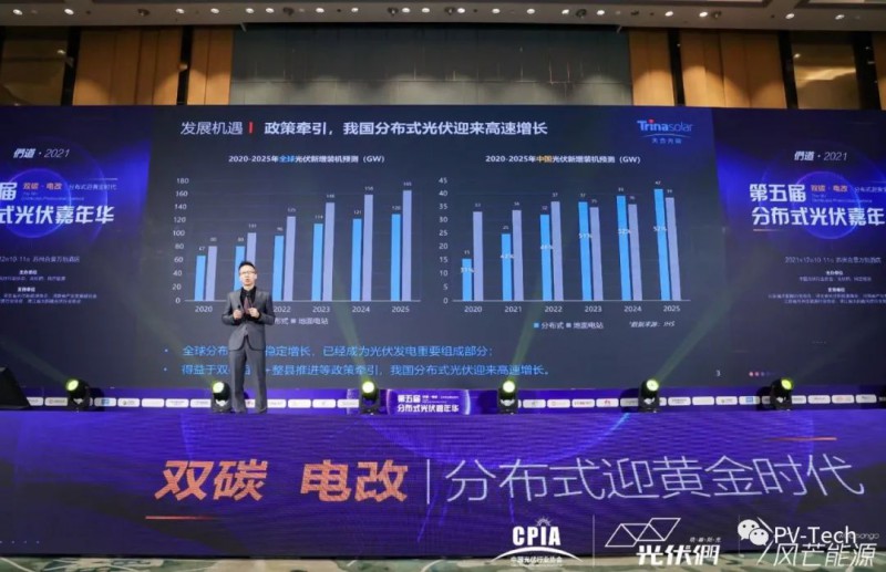 此外,当天,天合光能正式发布至尊600W+分布式解决方案,天合光能张映斌博士在演讲中深度剖析了以600W+为代表的超高功率组件对于分布式应用场景的显著价值及影响——分布式解决方案将推动光伏产业快速升级,提高分布式光伏组件功率、系统效率,降低分布式光伏度电成本。高端对话环节,还讨论了分布式光伏的发展趋势和市场格局