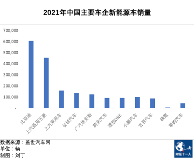 从2021年销量来看(图5),在比亚迪之后,上汽通用五菱虽然销量规模大,但其主要是依靠低档次的宏光MINI EV车型,与比亚迪不在同级。上汽乘用车则是依靠多生孩子打群架,单车型无一进入销量前十,企业核心技术和竞争力与比亚迪相差甚远。