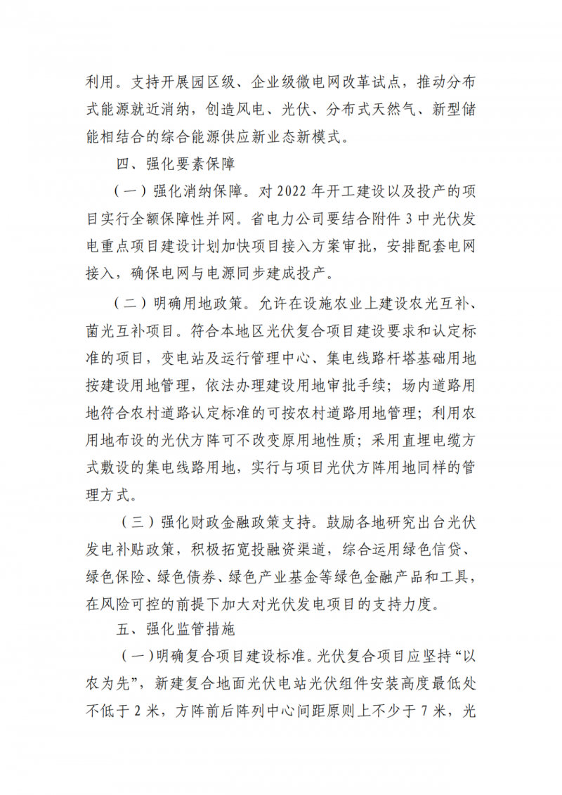在具体保障措施方面,要求对2022年开工建设以及投产的项目实行全额保障性并网,安排配套电网接入,确保电网与电源同步建成投产。规范开发秩序,不得将配套产业等作为项目备案和开发建设的门槛。