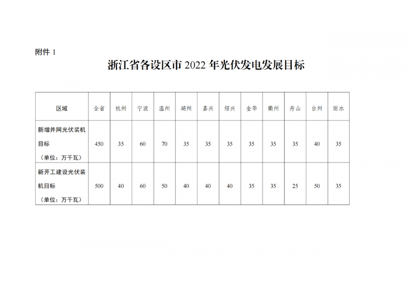 3月21日,浙江省能源局下发《关于2022年光伏发电项目建设有关事项的通知》,规划2022年全省光伏建设目标为并网4.5GW,开工5GW,并对各市的光伏发电发展目标进行了分解。