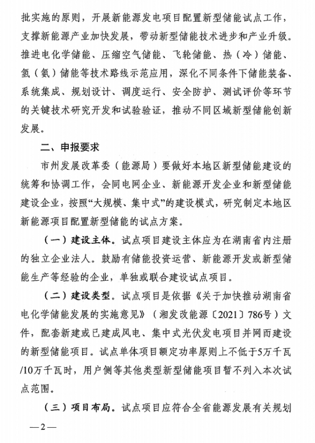 日前,湖南省发展和改革委员会发布《关于开展2022年新能源发电项目配置新型储能试点工作的通知》。