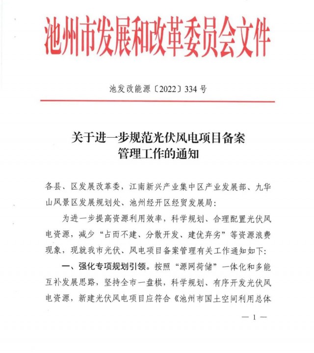 9月22日,安徽青阳县发改委官网公布《关于进一步规范光伏风电项目备案管理工作的通知》。